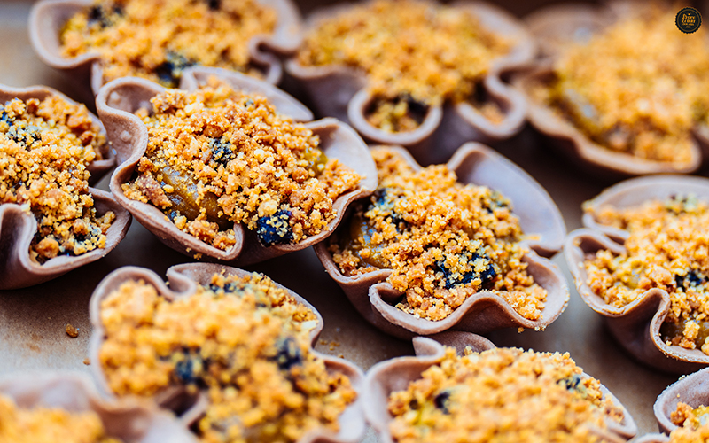 O doce vencedor, a Flor de Castanha, convenceu todos os paladares com o lema “a delicadeza da flor, a alma da castanha”. A criação valoriza a castanha — um fruto típico da época — trabalhada em duas texturas: um puré cremoso e um crumble crocante. A base de massa estaladiça confere leveza e estrutura, enquanto a gelatina de vinho do Porto acrescenta um toque aromático e vínico, resultando num conjunto equilibrado e sofisticado.